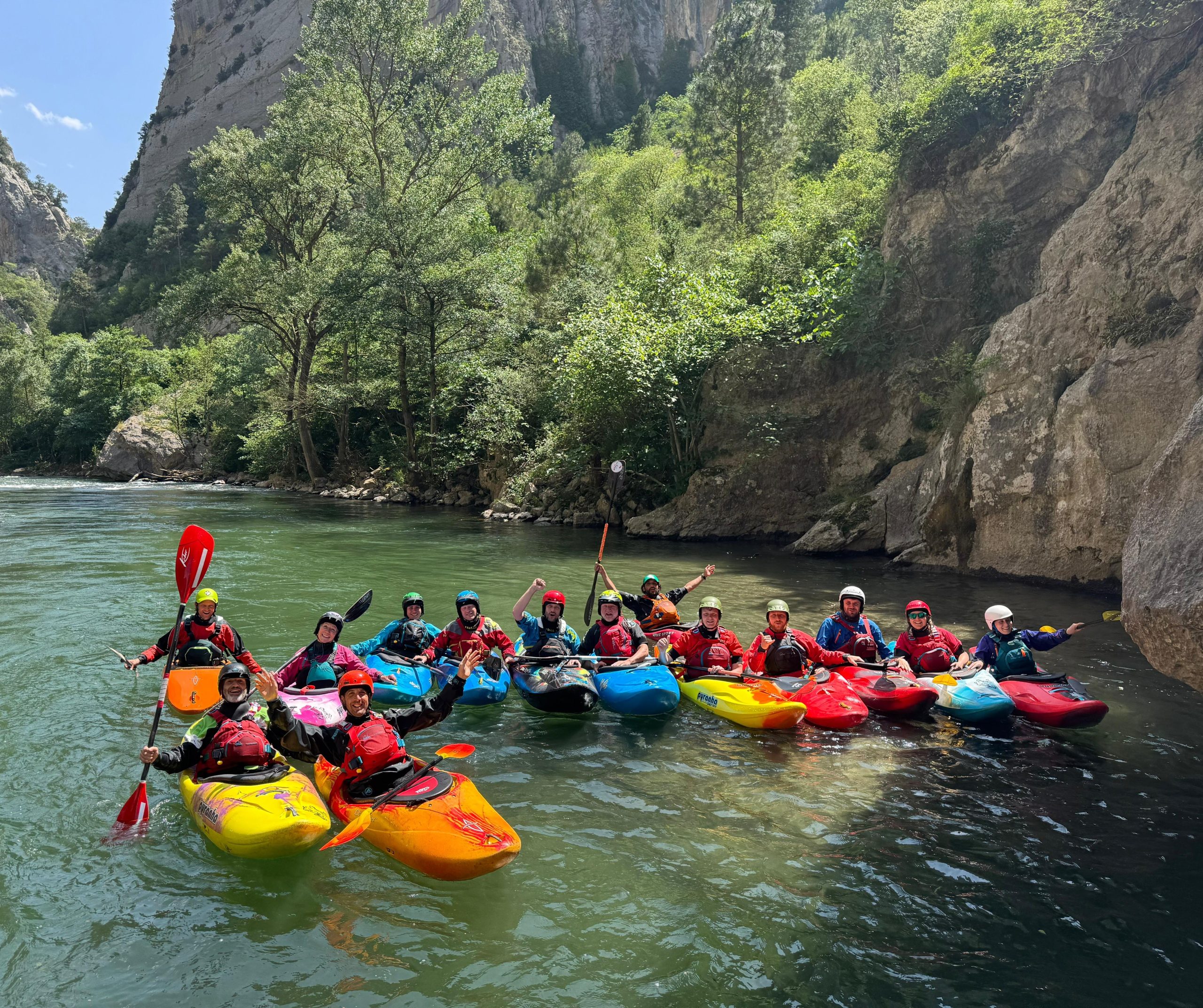 Our annual Catalonia trip is on the Noguera Pallaresa and Sort is the principal town in the area. The river offers about 45km of whitewater with the stretches of easy grade 2, continuous 3+/4 and everything in between. It’s also dam release which means that we can pick and choose our sections to suit the needs of the group.